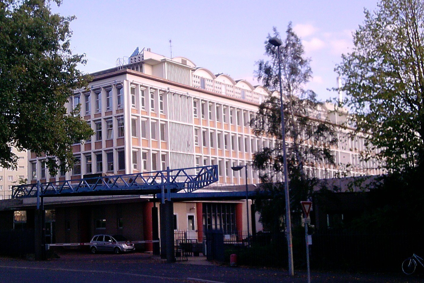 Situé en bord de Loire, le terrain offre des abords dégagés favorables à la visibilité du bâtiment mais se trouve en zone inondable. Pour cette raison, probablement, Tschumi juche son bâtiment sur vingt-deux piliers de béton. Le volume présente des façades identiques développées suivant un modèle en grille. Ce système rationaliste est fondé sur un module de baie en béton de près de 4 m. de hauteur pour les trois niveaux principaux. De la sorte, la lumière circule en abondance dans les trois plateaux regroupant les chaînes de production. L’écriture architecturale de l’édifice transforme l’usine et son laboratoire en un immeuble moderne inspiré par les constructions de Mies van der Rohe dans la trame des façades et par les bâtiments de Le Corbusier auquel l’assise sur pilotis fait référence.