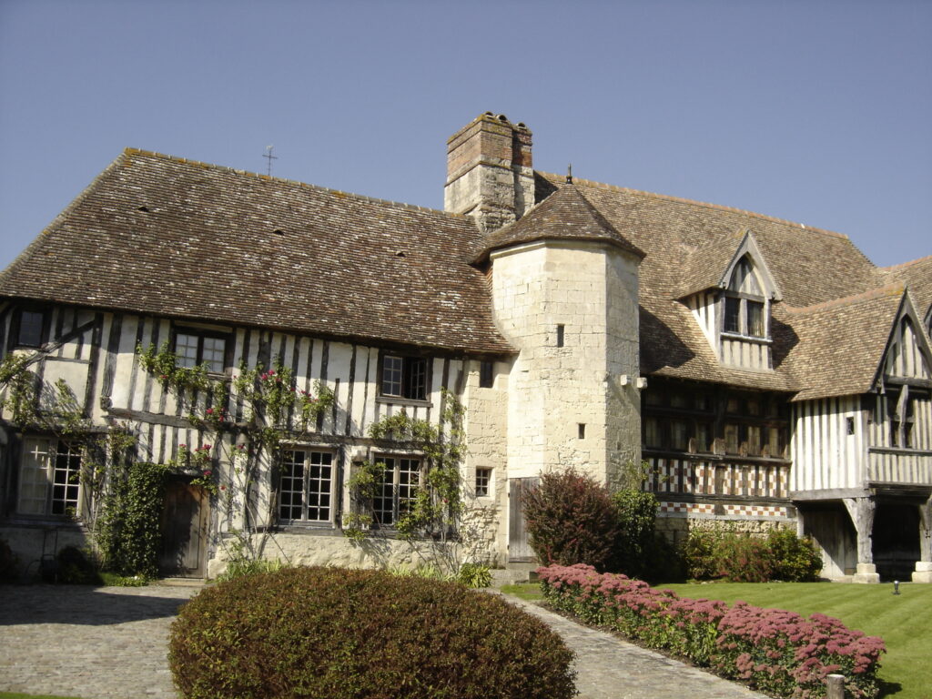Les façades et toitures ; le mur de clôture sur rue avec sa porte et les restes d'une galerie du 16e siècle ; à l'intérieur : le vestibule du 16e siècle et l'escalier : inscription par arrêté du 12 décembre 1939 - Les peintures murales de la pièce du rez-de-chaussée du bâtiment en fond de cour (cad. 25 345) : inscription par arrêté du 15 mai 2003