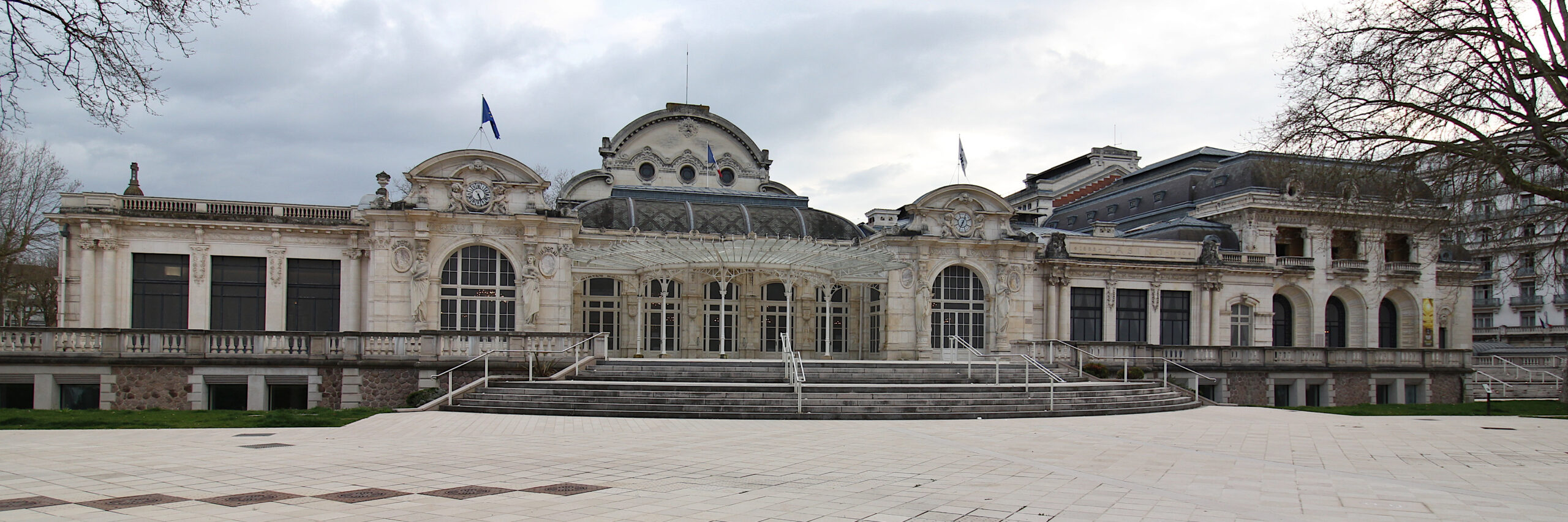 Monument historique Voir sur la carte Voir tous les monuments — Protection du monumentThéâtre et grand Casino, à l'exclusion des parties classées, y compris les pièces suivantes avec leur décor : hall d'entrée de la salle de théâtre, grand hall, grande galerie, salle des Fêtes, salon des Dames et salon de lecture (cad. AX 67) : inscription par arrêté du 13 août 1991 - Façades et toitures ; salle du théâtre avec ses galeries et son vestibule ; salle Berlioz ; salons Debussy, Ravel, Chabrier ; salle du bar de l'Horloge ; salle Napoléon III ; déambulatoires de l'ancienne salle de jeux (cad. AX 67) : classement par arrêté du 18 mars 1996