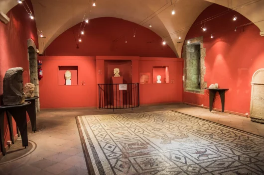 Collections archéologiques provenant du territoire de Fréjus. La muséographie s'articule autour des thèmes propre à la ville antique de Forum Julii : les ateliers de potiers et la production de céramiques, l'habitat à travers l'évocation de la maison romaine de la Place Formigé et enfin le monde des morts est illustré par deux nécropoles mises au jour lors de fouilles entre 1983 et 1987. Une salle est consacrée au lapidaire dont la pièce principale est l'Hermès bicéphale devenu le symbole de la ville de Fréjus. Dans cette pièce se trouve également la mosaïque polychrome dite "de la panthère". La salle d'accueil présente une maquette de la ville antique